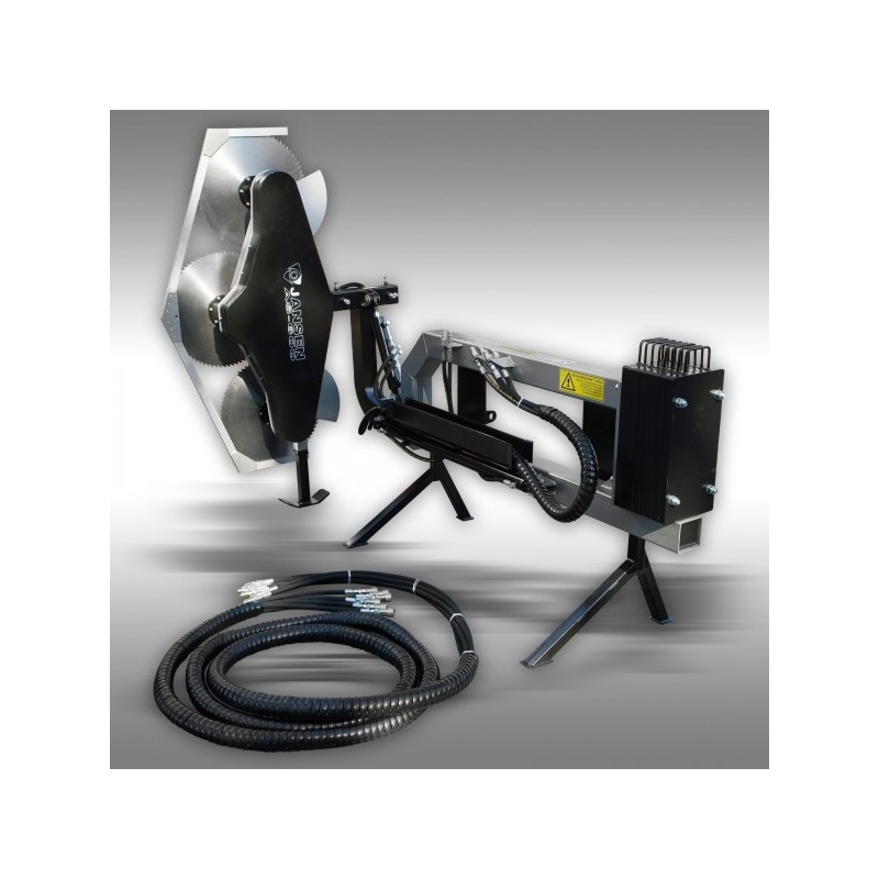 | Z nakupom boste prejeli 2 ležajna bloka in potrebne hidravlične cevi, kot tudi žage za obrezovanje. Potrebni hidravlični konektorji na nosilnem vozilu so 3x dvojno delovanje. Glede na okoliščine in zahteve priporočamo obratovalno hitrost približno 2 do 13 km / h. |