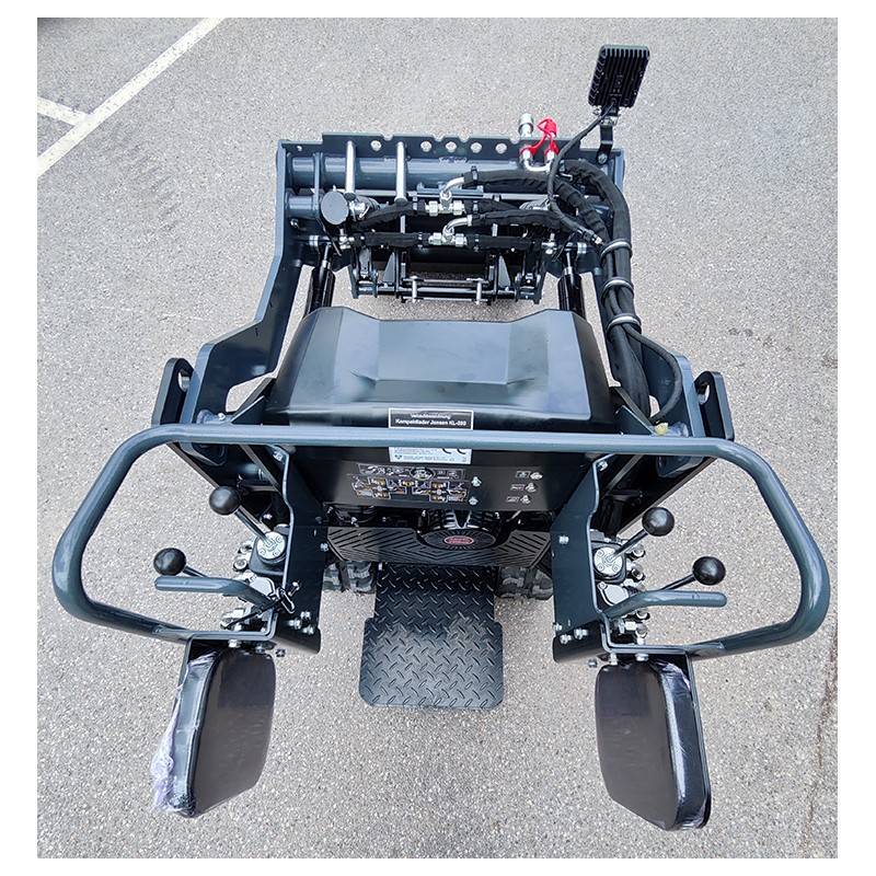 V primerjavi s klasičnimi modeli na kolesih, naš mini nakladalec na gosenicah ponuja bistveno boljši oprijem. Podvozje z gosenicami zagotavlja enakomerno porazdelitev teže in optimizira tlak na tla, kar omogoča izjemno stabilnost in nadzor. Tudi na spolzkih ali neenakomernih tleh Jansen® KL-200 ohranja svojo zanesljivost, zagotavljajoč najvišjo raven varnosti in udobja pri delu.